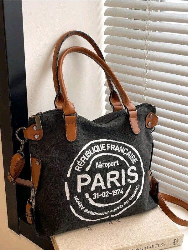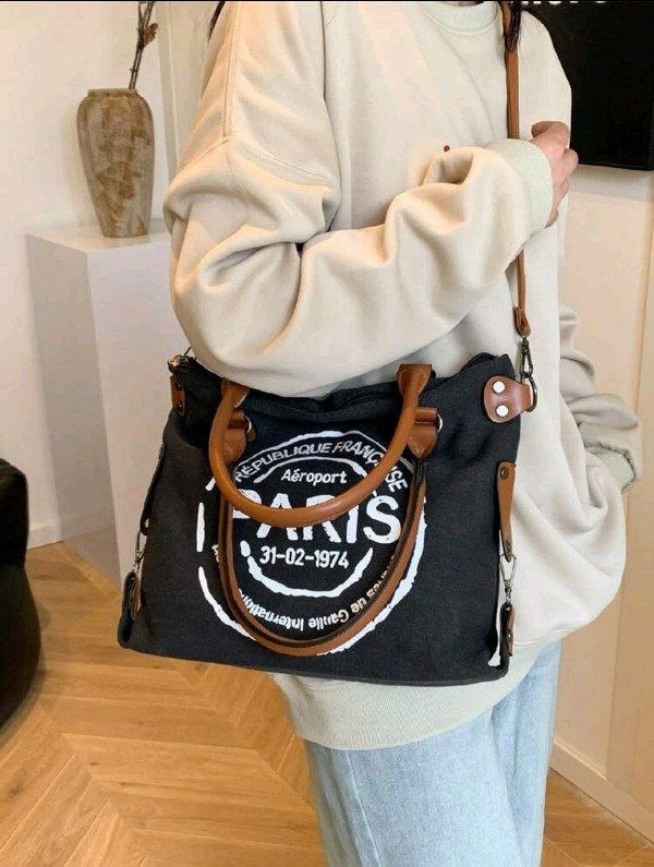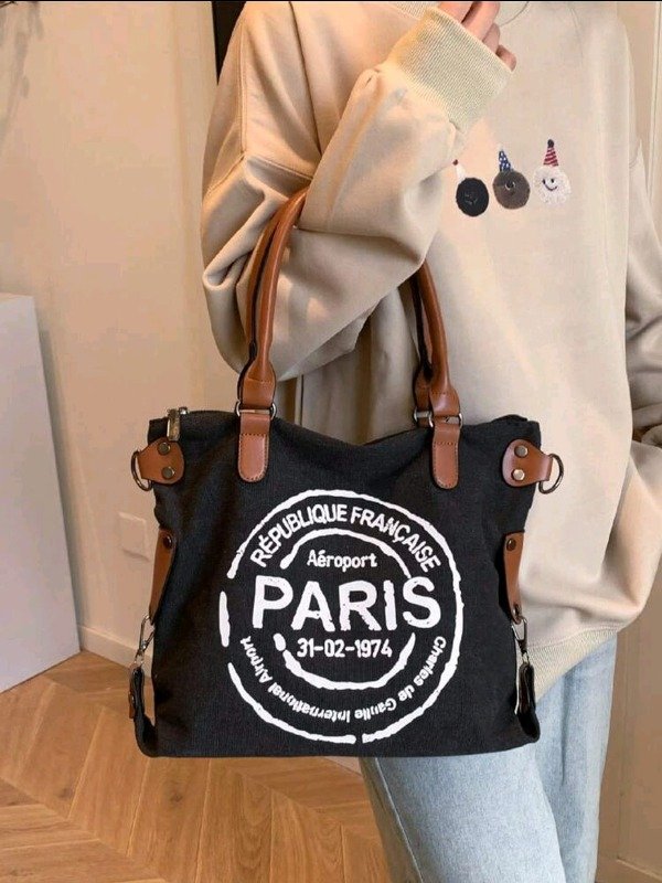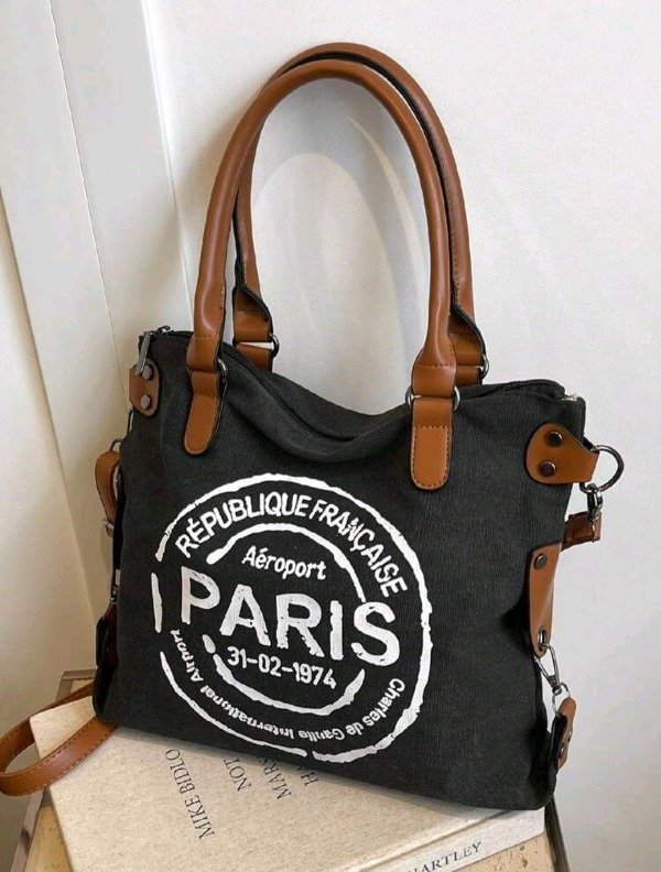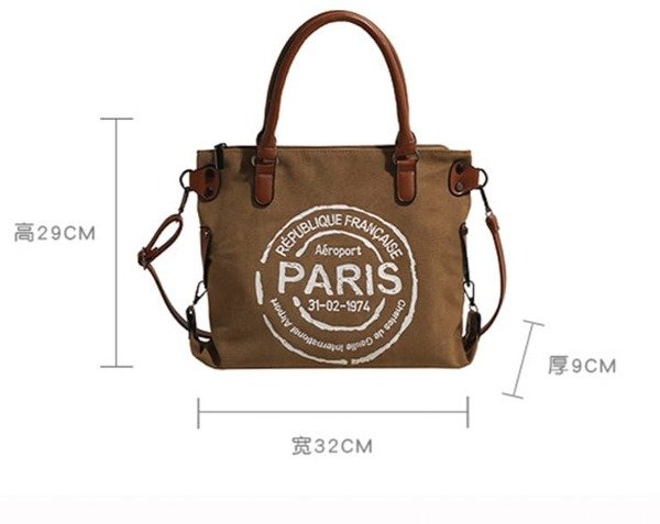 Bolso Importado París. En lona con detalles en cueropu las manijas y correa extensora. Medidas 32 x 29 x 9cm