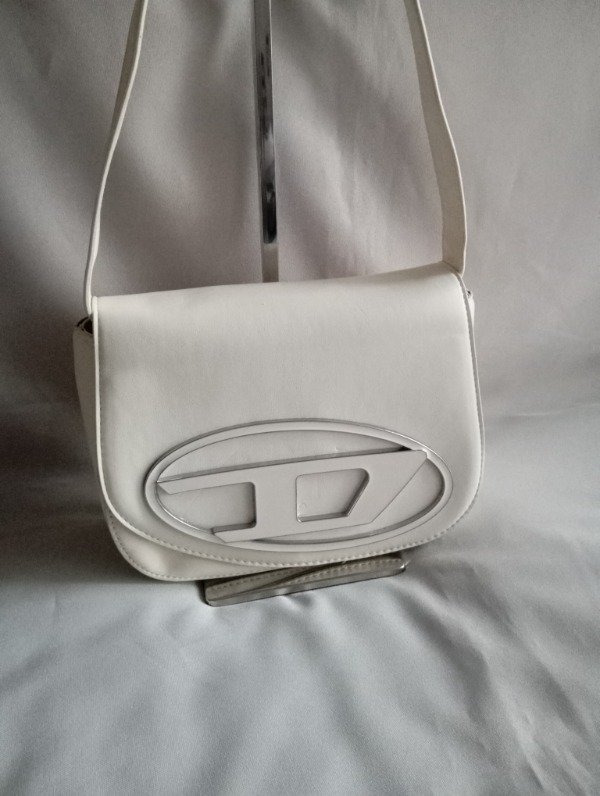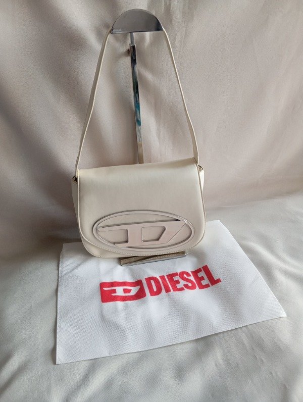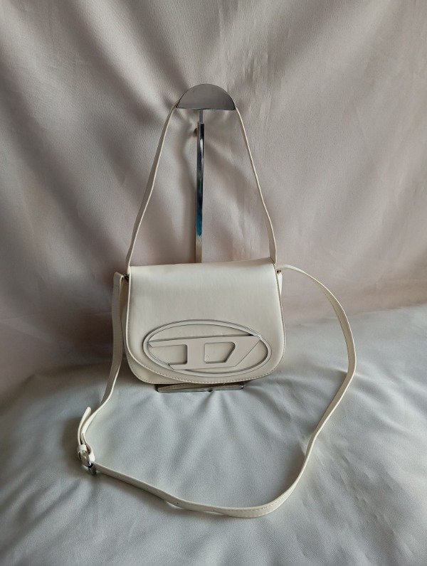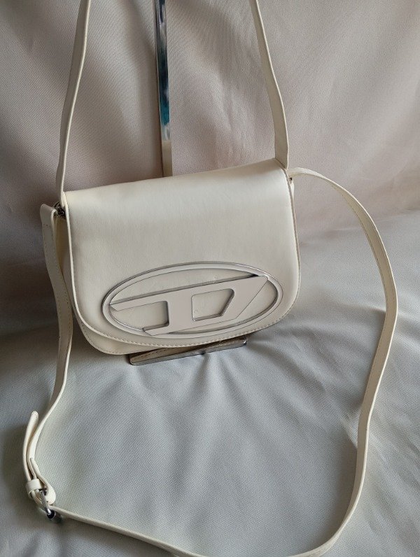 Diesel Bag en cueropu color crema. Trae doble correa. Vienen en bolsa de la marca