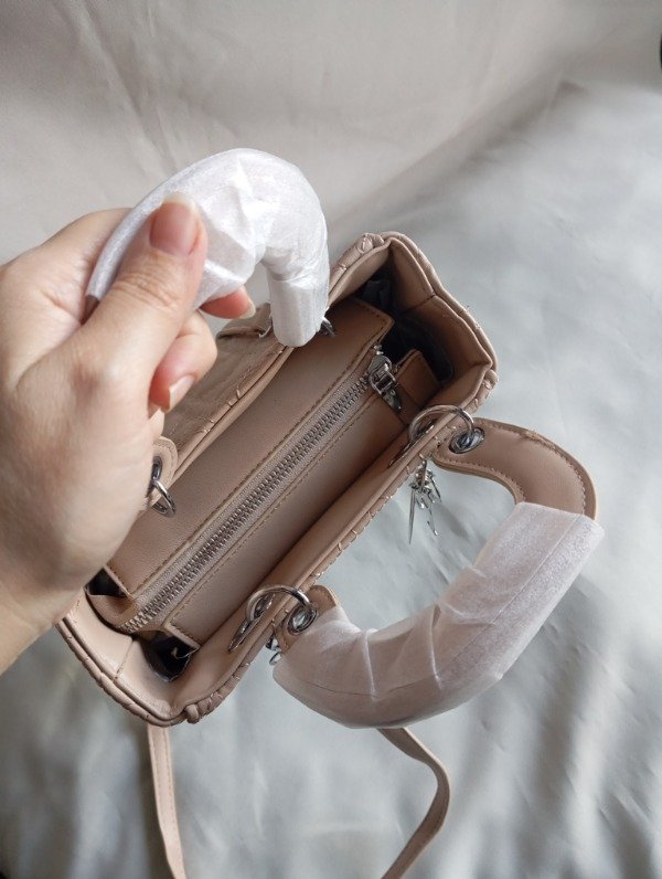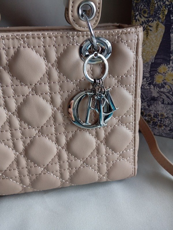 Cartera Lady Dior en cueropu nude. Trae correa extensora.