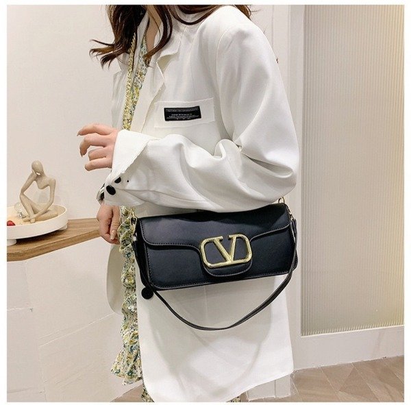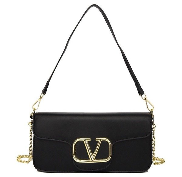Baguette Valentino en cueropu negro. Doble correa. Medidas 27 x 21cm